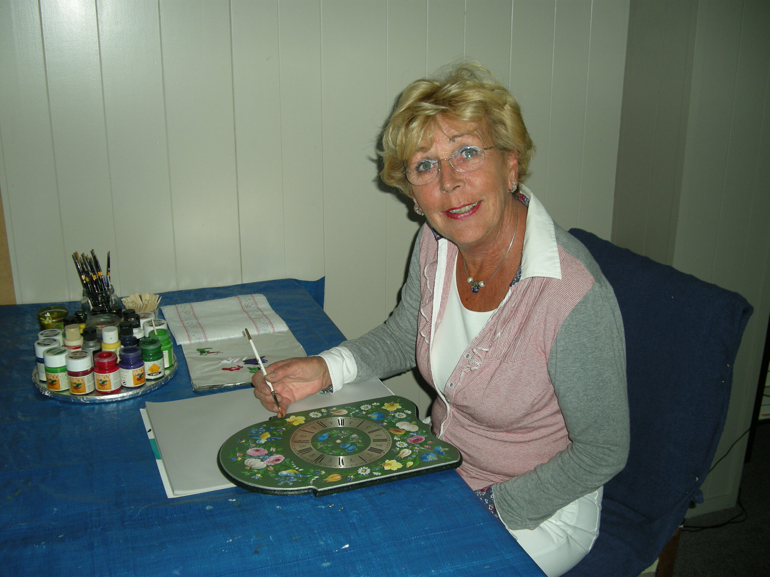 Terug in Nederland ben ik begonnen met les geven in “Decoratief Assendelfter Schilderen” met acrylverf onder begeleiding van mijn “helaas overleden” leraar Jacques Zuidema.